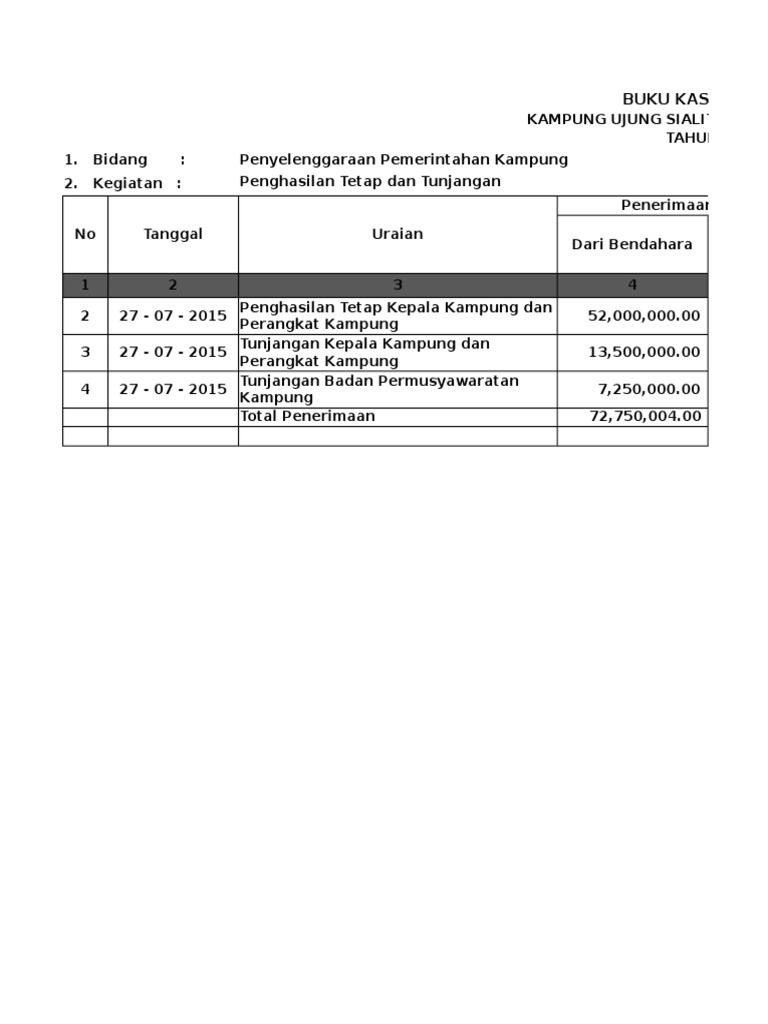 Apakah anda mencari contoh format buku kas pembantu kegiatan, spp dan pernyataan tanggung jawab belanja dalam bentuk excel (xls). 58, *) saldo bank harus sama pada saldo buku pembantu bank. Contoh buku kas umum (bku):. 30, pada hari kamis tanggal 30 april 2015, buku kas umum ditutup dengan keadaan sebagai.