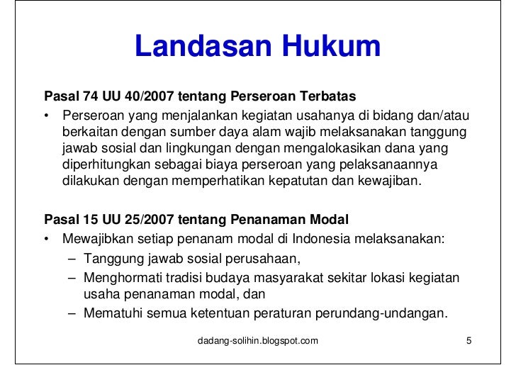 Apa definisi CSR dalam konteks Indonesia? CSR (corporate social responsibility) adalah suatu keputusan strategis perusahaan untuk bertanggung-jawab atas dampak dari keputusan yang diambil dan dampak dari kegiatan bisnis yang dilakukan, dan yang dapat berkontribusi pada pencapaian keadilan sosial. Mengapa disebut keputusan strategis perusahaan? 22 Aug 2021 — Dengan kata lain, besaran dana CSR adalah diserahkan kepada kebijakan masing-masing perusahaan. Meski begitu, dana CSR adalah bersifat wajib dan ... 1 Nov 2020 — Berapa persenkah dana CSR yang wajib dikeluarkan perusahaan setiap ... (“UU PT”) menyebut Corporate Social Responsibility (“CSR”) dengan ... 25 Jun 2021 — Corporate Social Responsibility adalah komitmen dari bisnis atau ... Misalnya perusahaan memberikan sokongan dana dan menjadi sponsor ...