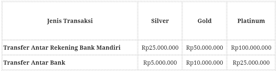 Kenaikan Limit Transfer via BNI Mobile Banking ... Perubahan Limit Transfer via BNI Mobile Banking. Saat ini, limit transaksi transfer antar BNI dan antar Bank lain melalui BNI Mobile Banking menjadi total sebesar Rp 400 juta per hari per nasabah. Berikut ini adalah rinciannya : NO. FITUR. BNI MOBILE BANKING. Limit Transfer BNI, Mandiri, BCA, BRI [Sesama dan Antarbank] 1 Limit transfer BNI. 2 Limit transfer ATM Mandiri. 3 Limit Transfer ATM BCA. 4 Limit Transfer ATM BRI. 5 Limit transfer ATM BTN. 6 Limit transfer ATM CIMB Niaga. 7 Limit transfer ATM Bank Mega. 8 Limit tarik tunai BNI. 9 Limit pembayaran belanja BNI. Info Lengkap Limit Transfer dan Biaya Administrasi Bank di ... Limit Transfer dan Biaya Admin Bank BCA, Mandiri, CIMB Niaga, BNI dan Permata. Setiap bank pasti mempunyai limit tersendiri untuk mengakomodir kebutuhan para nasabahnya, Disini Sepulsa akan memberikan informasi kepada Anda yang ingin tau limit transfer dan biaya administrasi dari beberapa bank di Indonesia. Tetapi keterangan di bawah ini bukan ... Maksimal Transfer ATM BNI Sesuai Jenis Kartu - Diatm.com Sedangkan untuk batas maksimal transfer ATM BNI ke bank lain seperti bank Mandiri, bank BCA, bank BRI serta bank lainnya adalah sebagai berikut. Jenis Kartu. Maksimal Transfer per Hari. ATM BNI Silver. Rp 5.000.000. ATM BNI Gold. Rp 15.000.000. ATM BNI Platinum. Rp 25.000.000.