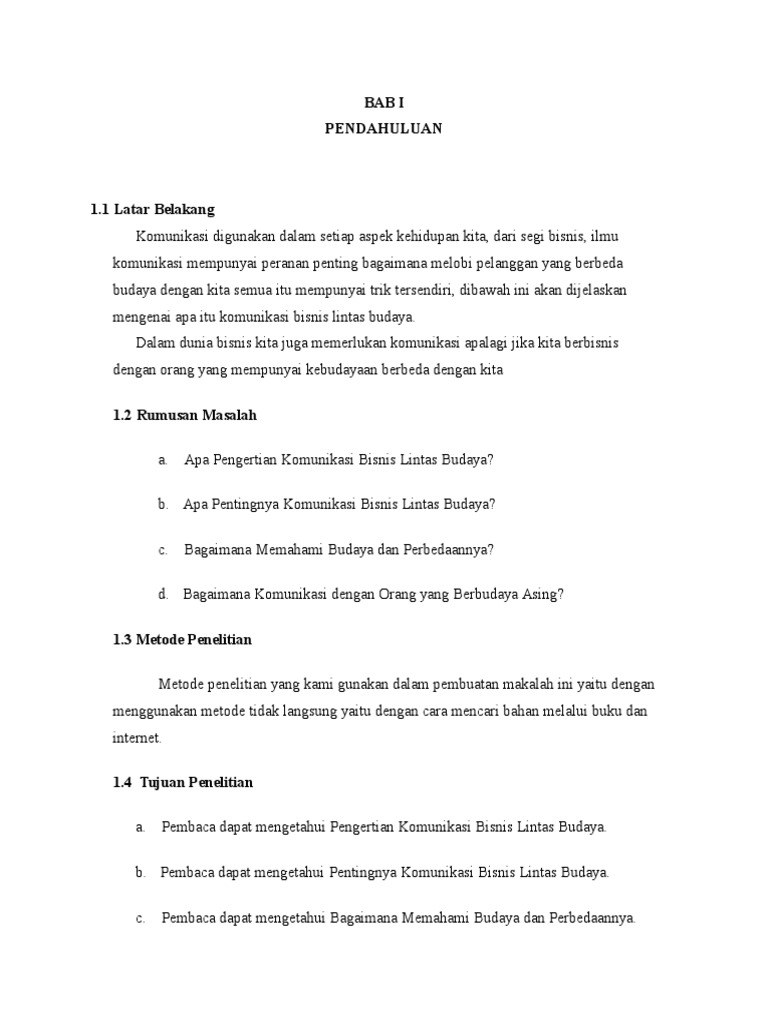 makalah bisnis komunikasi lintas budaya - Blogger May 29, 2017 · Manfaat dalam penulisan makalah tentang Komunikasi Bisnis Lintas Budaya yakni : 1. Membantu penulis untuk memahami Komunikasi bisnis lintas budaya dalam menjalankan bisnis. 2. Membantu penulis untuk mengetahui prosedur yang benar dalam penulisan makalah 3. Meminimalisir kesalahan yang terjadi dalam penulisan makalah BAB II PEMBAHASAN